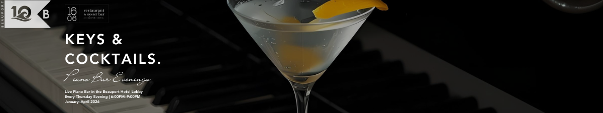 Join us as we celebrate our 10th anniversary year all winter long, every Thursday with the return of Piano Bar. Our cozy lobby transforms into a lively Piano Bar featuring the talented Ricky Lauria. Whether you're enjoying a signature cocktail or savoring a seasonal bite, the vibrant melodies and warm ambiance make this weekly event a standout of our anniversary season. Reservations are encouraged with arrival between 6:00PM–6:30PM. Please notify the restaurant if you will be arriving after 6:30PM. The full 1606 Restaurant & Oyster Bar menu will be available for dinner and cocktails.