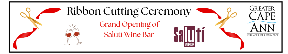 Come help us celebrate the long awaited Grand Opening of Saluti Wine Bar in Gloucester. Join us for the official ribbon cutting at 4 PM as we welcome this exciting new business to Main St. Then enjoy as they open their doors and invite us into their new space to unwind, connect and savor the good life!